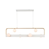 Цвет арматуры: Каркас белого цвета в сочетании с золотым, плафоны из белого акрила, два источника света - встроенная лента LED и лампы внутри плафонов.