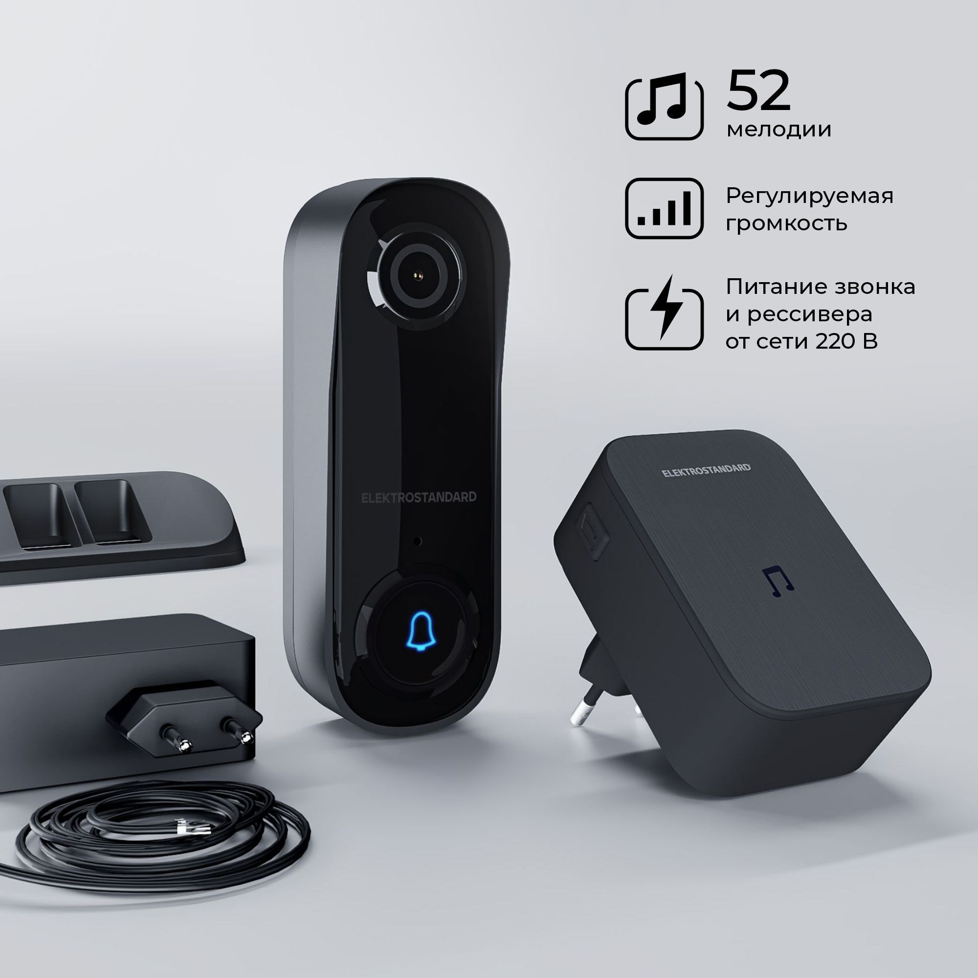 Характеристики 76106/00 видеозвонок Умный дом черный с питанием от сети 76106/00 Elektrostandard