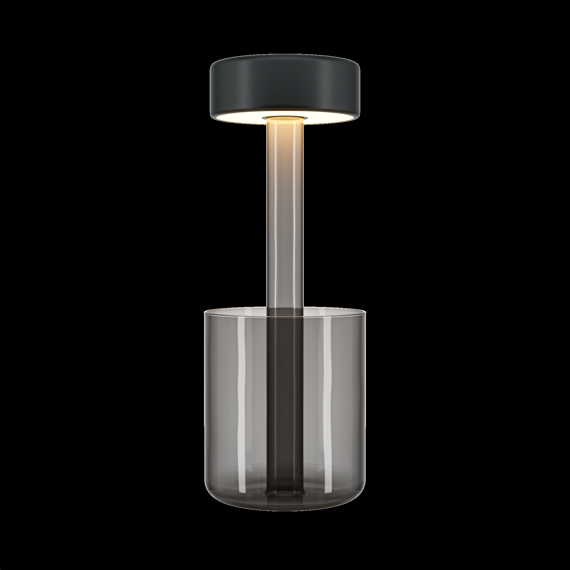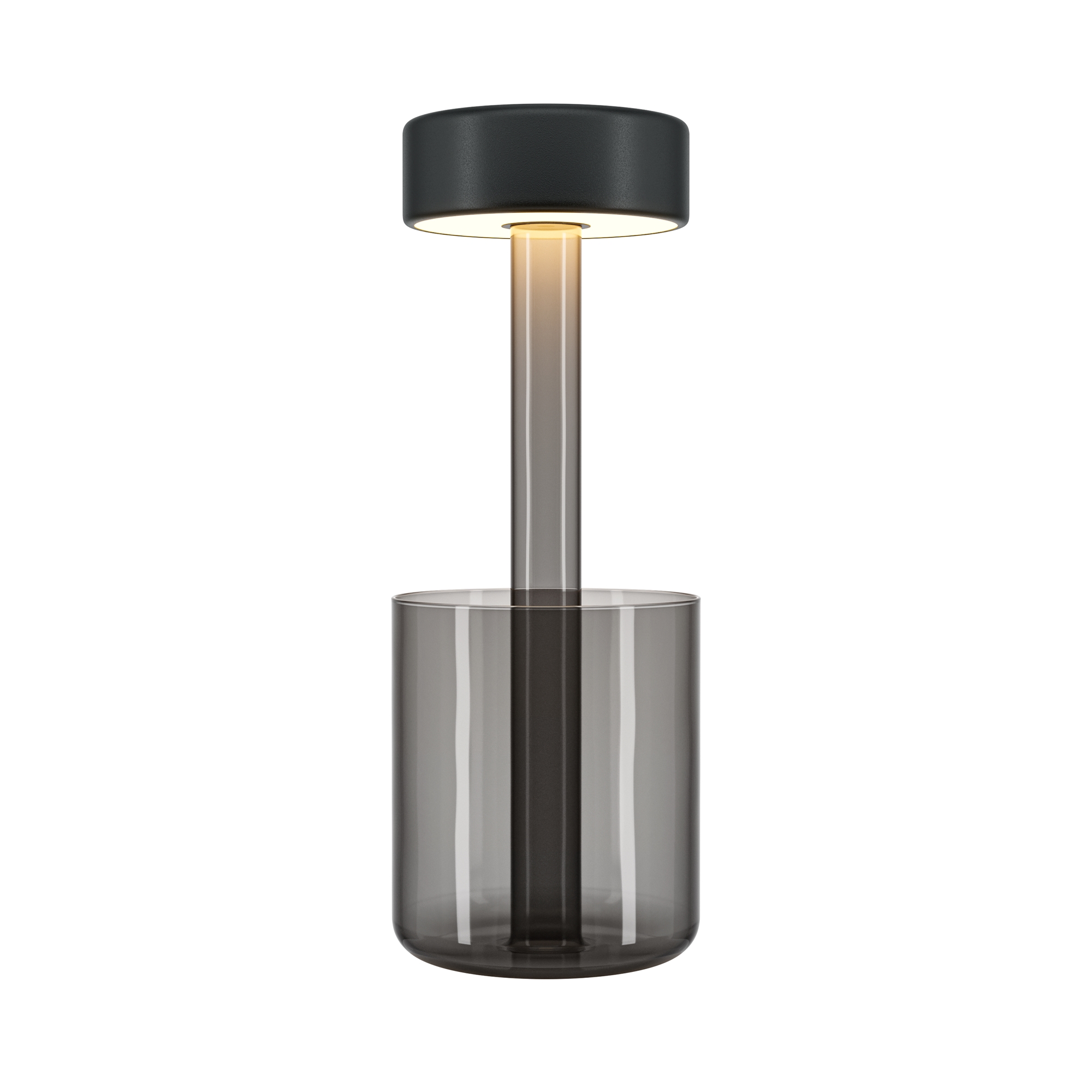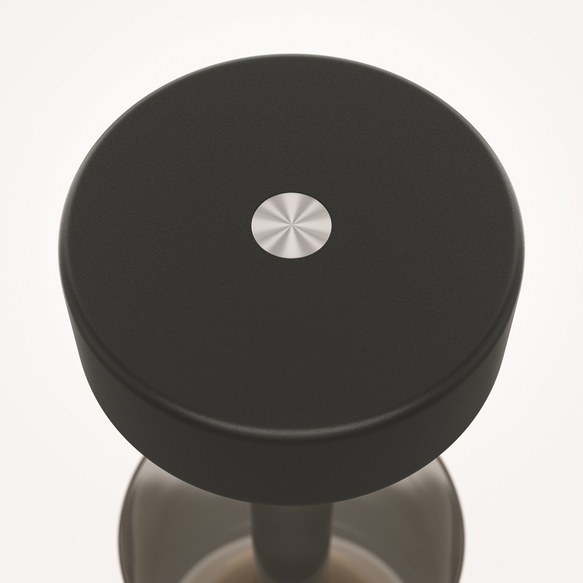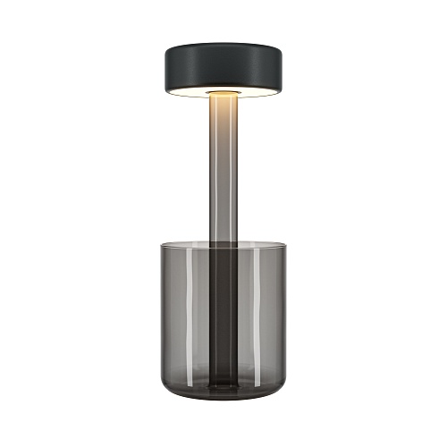 Портативный настольный светильник. Результат творческой коллаборации искусственного интелекта и предметного дизайнера. Два варанта корпуса светильника: с металлической тонкой ножкой на плоском круглом основании; со стеклянным основанием с интегрированным в него вазой. Плафон снимается с основания для удобного ухода за стеклянными элементами и подзарядки аккумулятора, расположенного в плафоне. Два варианта цвета стеклянных моделей - прозрачный и серый. Плафоны с рассеивателем из акрила в 3х цветах: черный, золотой, белый. Удобный сенсорный выключатель вверху плафона. Micro USB разъем для подзарядки скрыт в нижней части плафона. LED-источник света. Регулируемая цветовая температура от 2200К до 4000К.