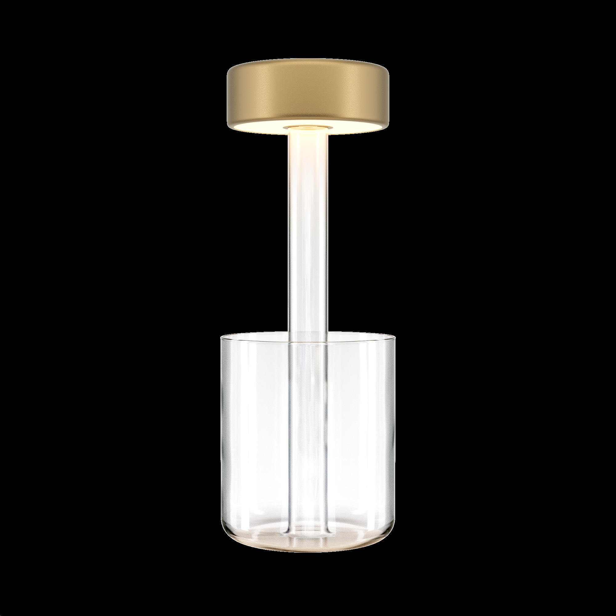 Портативный настольный светильник. Результат творческой коллаборации искусственного интелекта и предметного дизайнера. Два варанта корпуса светильника: с металлической тонкой ножкой на плоском круглом основании; со стеклянным основанием с интегрированным в него вазой. Плафон снимается с основания для удобного ухода за стеклянными элементами и подзарядки аккумулятора, расположенного в плафоне. Два варианта цвета стеклянных моделей - прозрачный и серый. Плафоны с рассеивателем из акрила в 3х цветах: черный, золотой, белый. Удобный сенсорный выключатель вверху плафона. Micro USB разъем для подзарядки скрыт в нижней части плафона. LED-источник света. Регулируемая цветовая температура от 2200К до 4000К.