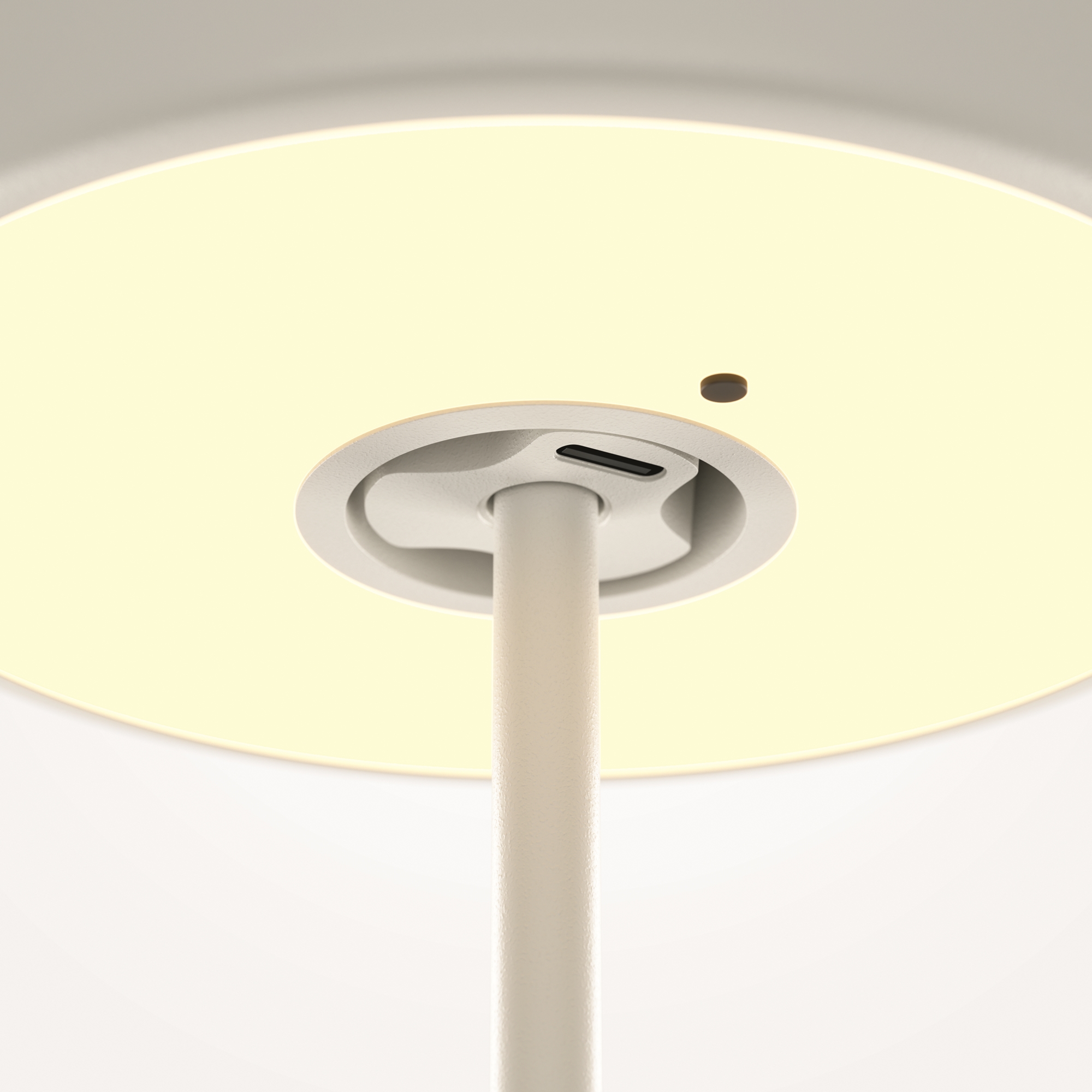 Портативный настольный светильник. Результат творческой коллаборации искусственного интелекта и предметного дизайнера. Два варанта корпуса светильника: с металлической тонкой ножкой на плоском круглом основании; со стеклянным основанием с интегрированным в него вазой. Плафон снимается с основания для удобного ухода за стеклянными элементами и подзарядки аккумулятора, расположенного в плафоне. Два варианта цвета стеклянных моделей - прозрачный и серый. Плафоны с рассеивателем из акрила в 3х цветах: черный, золотой, белый. Удобный сенсорный выключатель вверху плафона. Micro USB разъем для подзарядки скрыт в нижней части плафона. LED-источник света. Регулируемая цветовая температура от 2200К до 4000К.