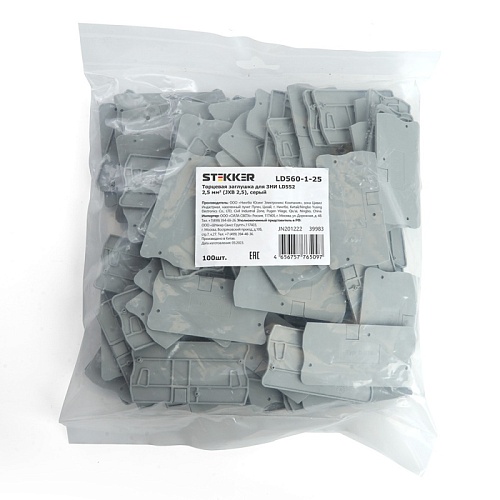 Характеристики LD560-1-25 Торцевая заглушка для ЗНИ LD552 2,5 мм² (JXB ST 2,5), серый STEKKER