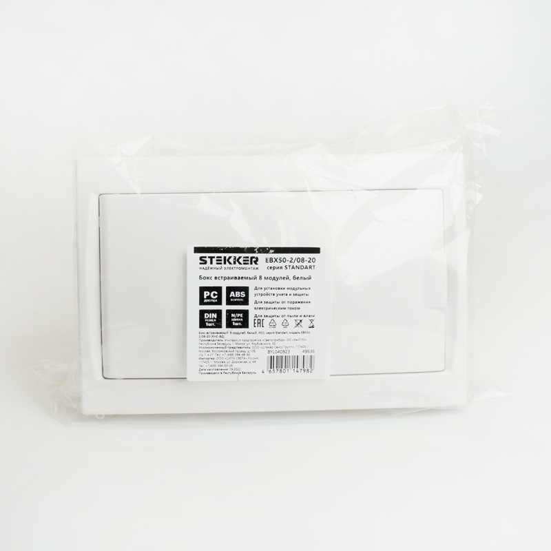 Характеристики Бокс встраиваемый STEKKER EBX50-2/08-20 8 модулей, белый, пластик, серия Standart