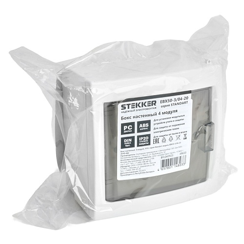 Бокс настенный STEKKER EBX50-3/04-20 4 модуля, пластик, серия Standart 49633