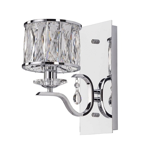 Металлическое основание бра гальванизировано в цвет хрома, создающего зеркальный эффект. Декорировано прозрачным хрусталем прямоугольной формы и декоративными розетками из массива хрусталя.