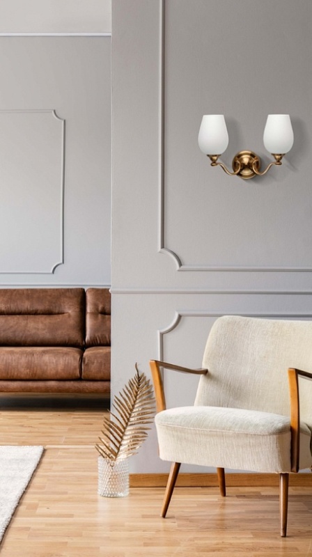 Основание светильника выполнено из металла и гальванизировано в цвет бронзы. Плафоны из опалового стекла выдуваются в форму и обработаны по технологии травления.