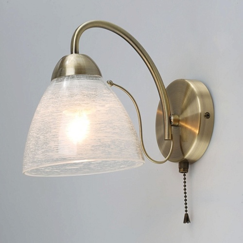 Металлическое основание светильника гальванизировано в цвет античной бронзы. На стеклянный плафон нанесен рисунок белой краской в виде паутинки.
