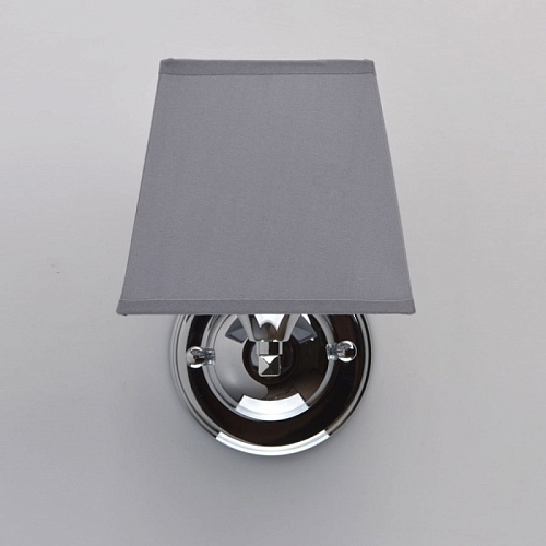 Основание бра: металл, гальваника в цвет хрома. Абажур: текстиль, цвет графит, термостойкий акрил внутри.