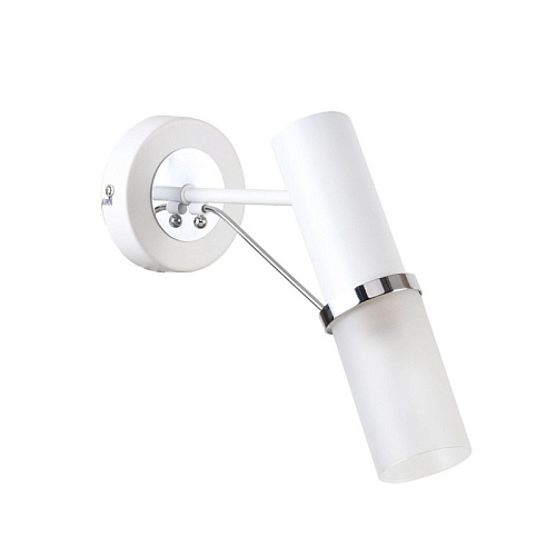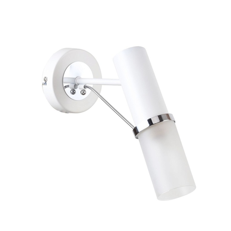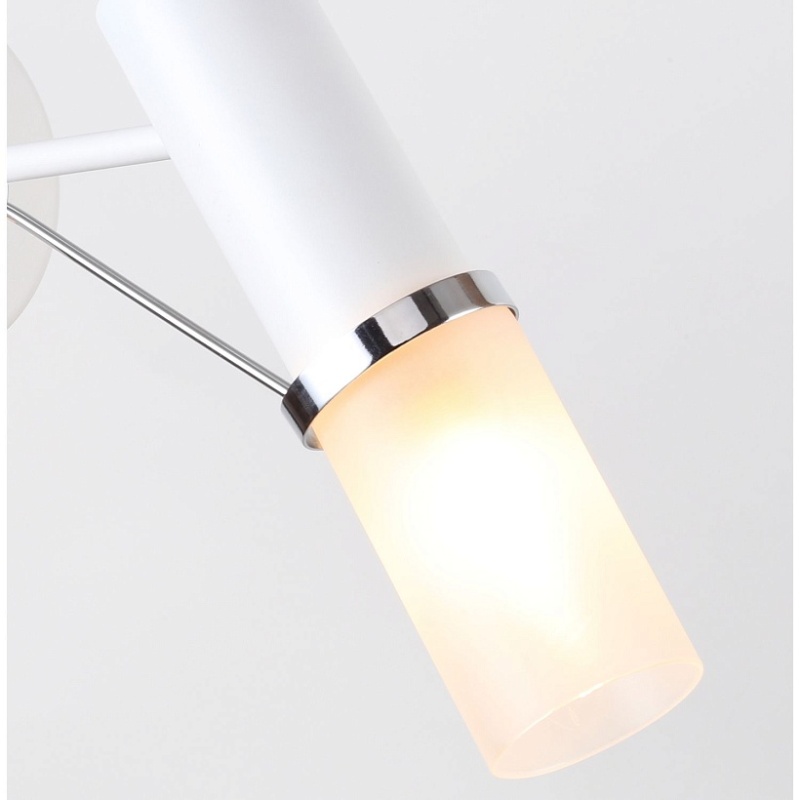 Металлический каркас белого цвета с декоративным элементом золотого цвета, плафон из белого матового стекла.
