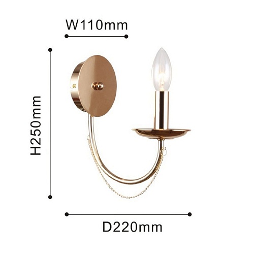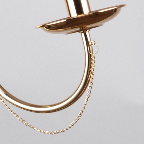 Металлический каркас золотого цвета, декор из тонкой цепочки, сменная лампа.