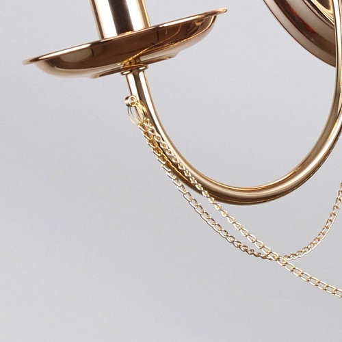 Металлический каркас золотого цвета, декор из тонких цепей, регулируемая высота, сменные лампы.