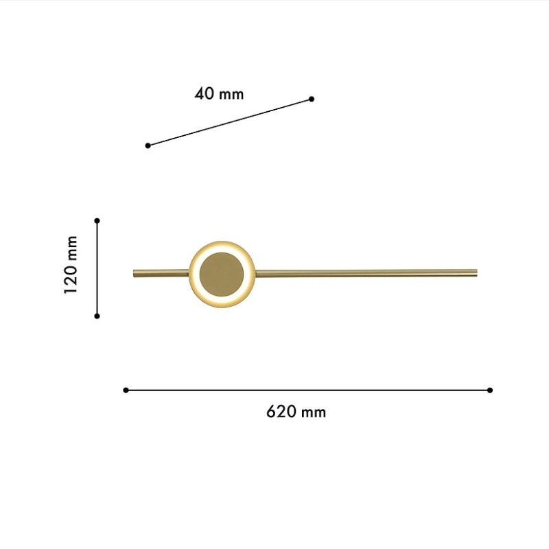 Металлический каркас цвета матовое золото, рассеиватель из пластика, лента LED, возможность монтажа под любым углом.