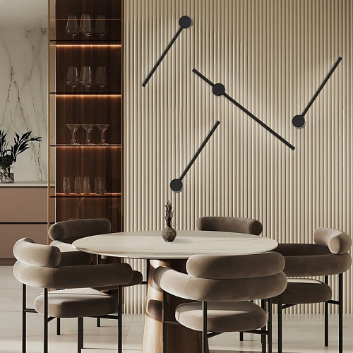Металлический каркас черного цвета, лента LED встроена в каркас, световой поток направлен в сторону стены.