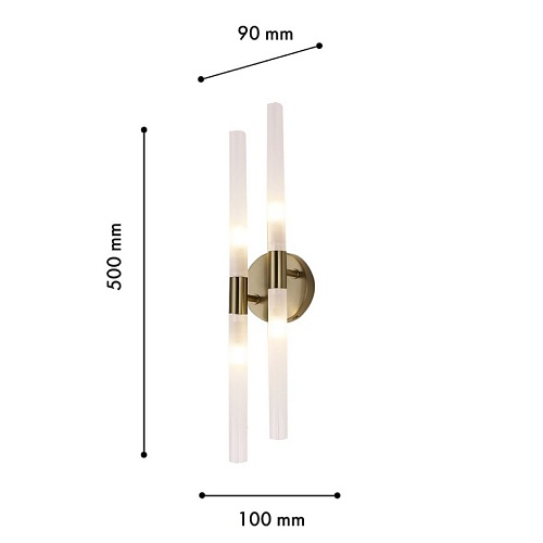 Металлический каркас цвета латунь, сочетание коротких латунных трубок и стеклянных плафонов с матовыми белыми и прозрачными фрагментами, сменная лампа.