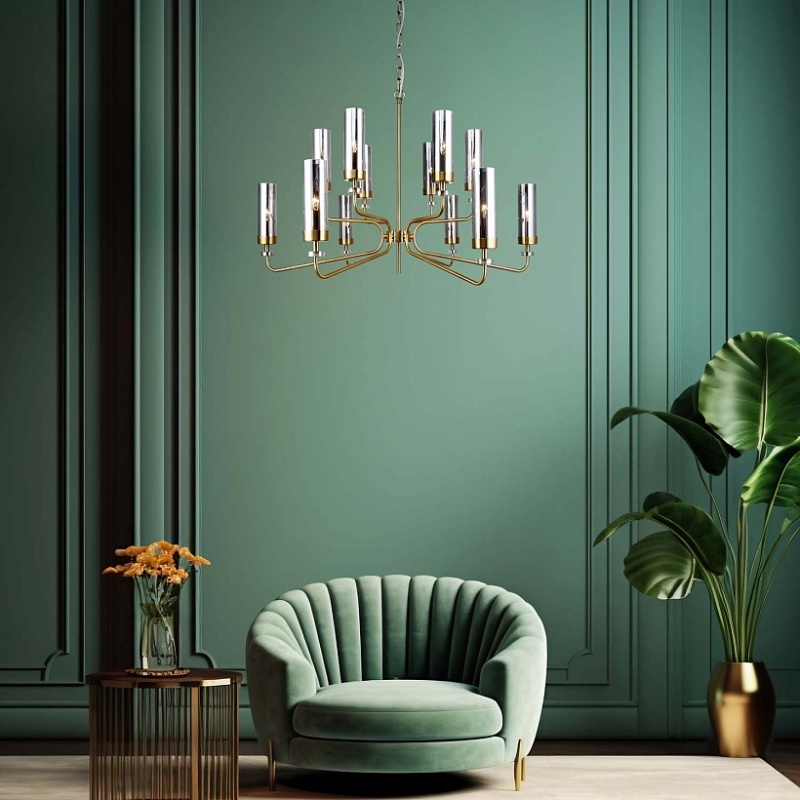 Каркас из металла бронзового цвета, удлиненный плафон из зеркально-серого стекла с гальваническим покрытием, цоколь E14.