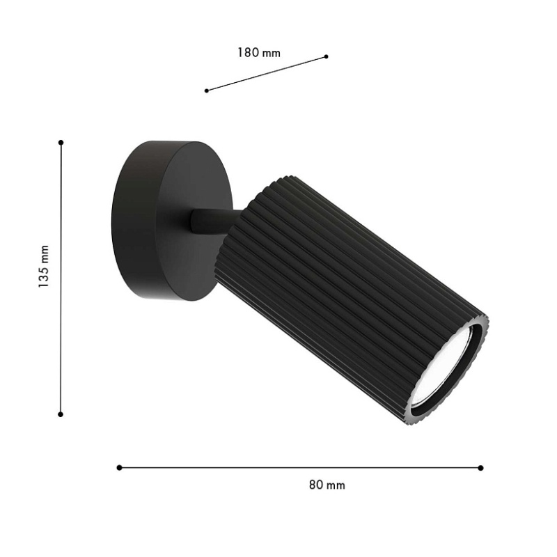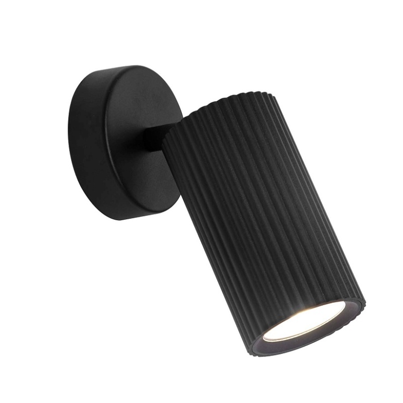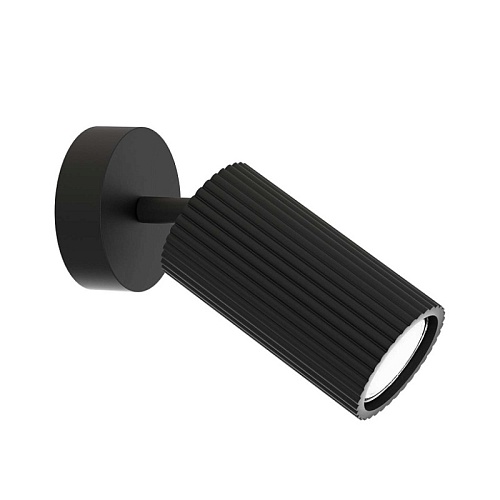 Каркас из металла черного матового цвета, черный, матовый, ребристый поворотный плафон, сменные лампы GU10.
