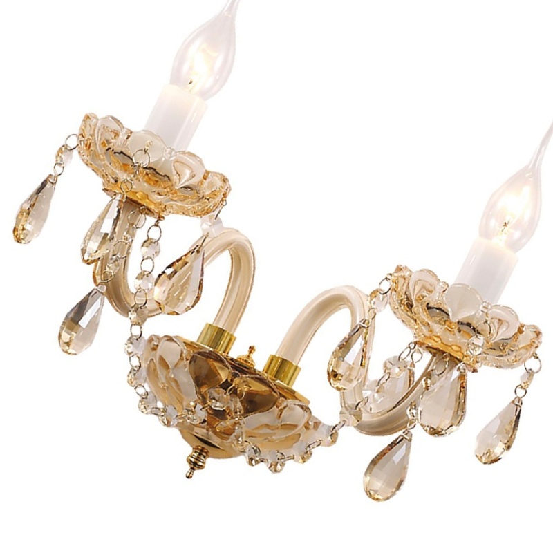 Металлический каркас золотого цвета, хрусталь высшего качества, стеклянные рожки и блюдца цвета "золотое шампанское".