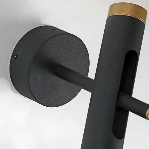Металлический каркас черного матового цвета, элементы окрашены в золотой цвет, плафон поворотный, модули LED с двух сторон плафона, акриловый рассеиватель.
