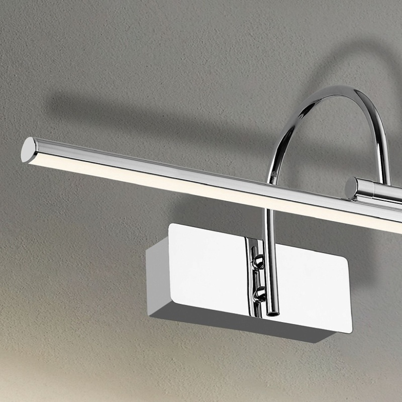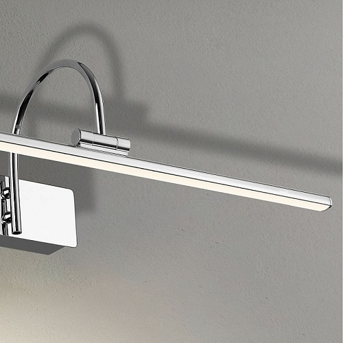Хромированный металлический каркас, рассеиватель из белого акрила.