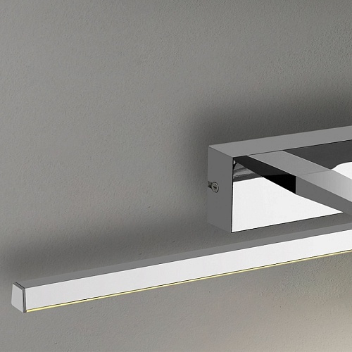 Хромированный металлический каркас, рассеиватель из белого акрила.