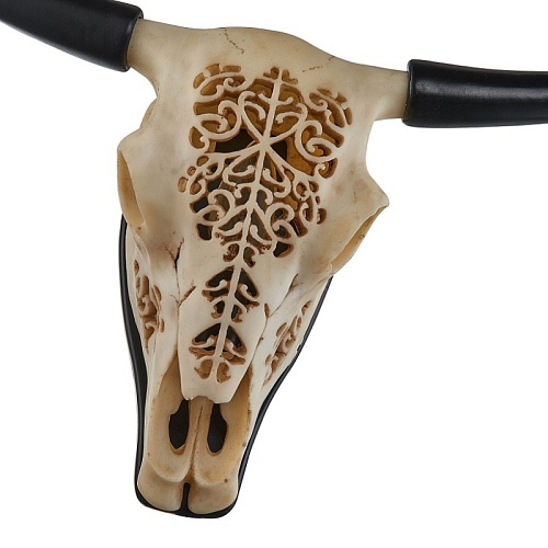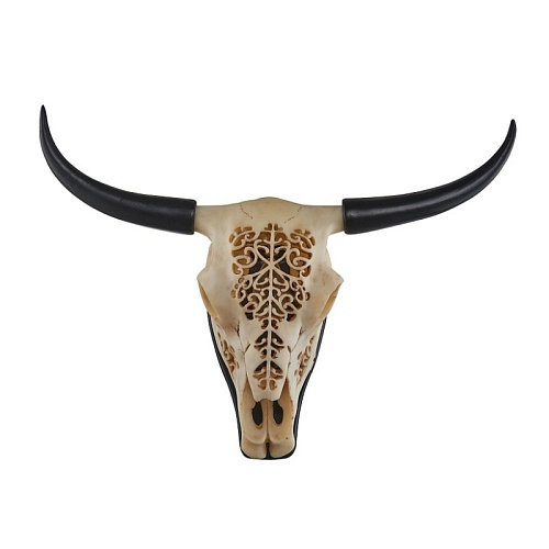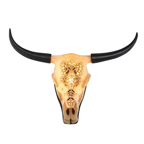 Каркас в виде головы быка из гипса цвета слоновой кости.