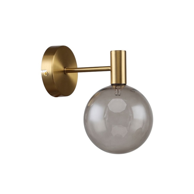 Металлический каркас цвета латунь, круглый плафон из стекла коньячного оттенка.