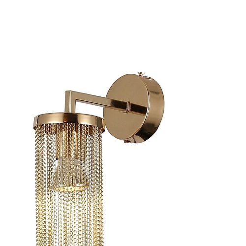 Металлический каркас и цепочки золотого цвета, лампу GU10 можно менять.