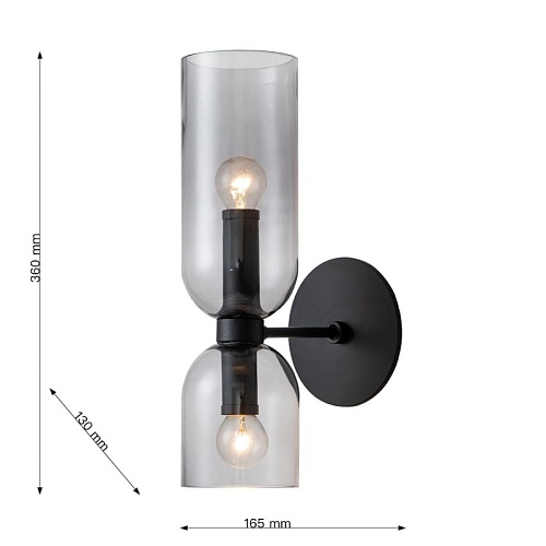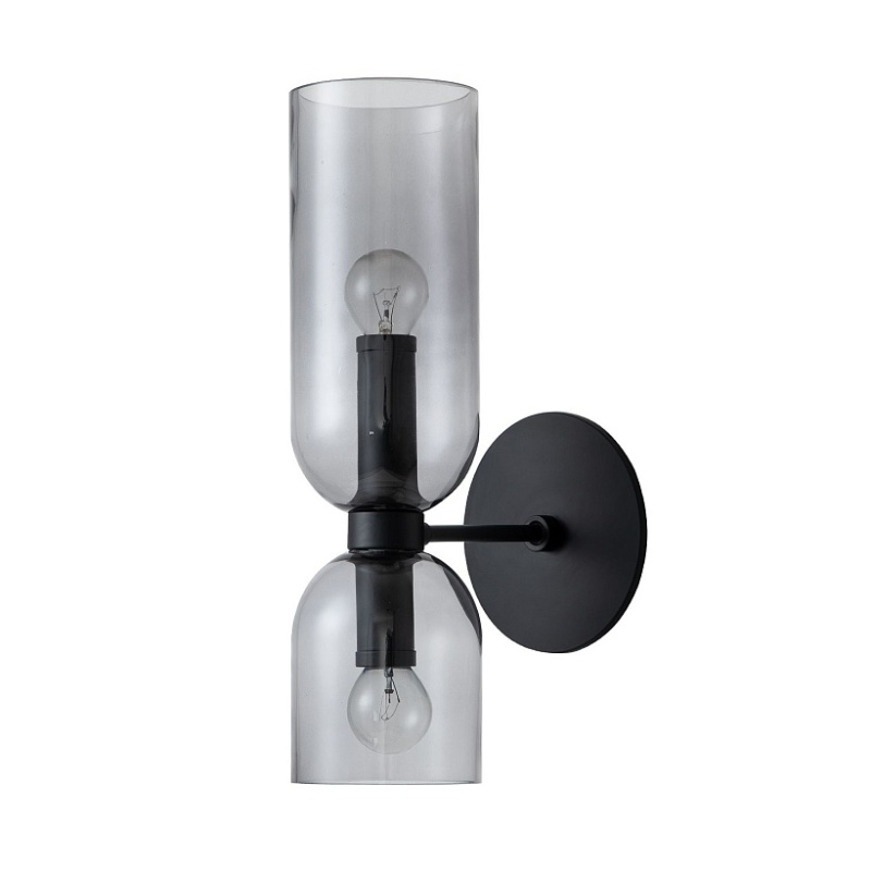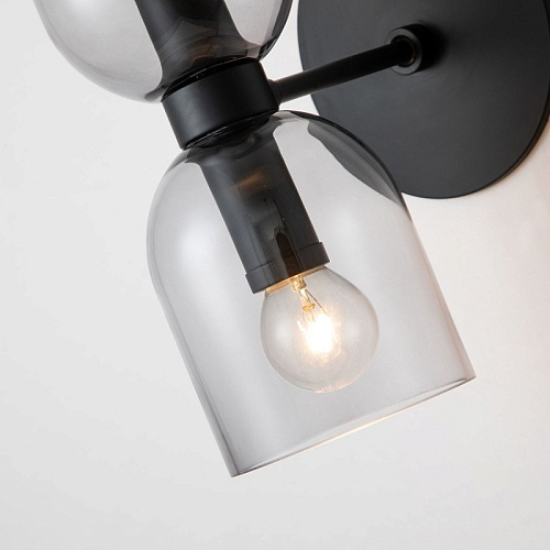 Металлический каркас черного цвета, плафоны из стекла дымчато-серого цвета.