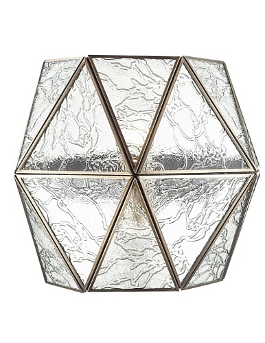 Металлический каркас цвета античной латуни, плафон из прозрачного стекла с эффектом льда.