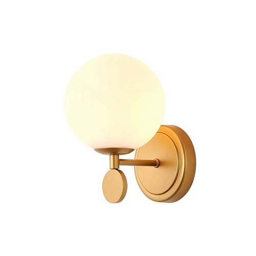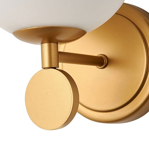 Каркас из металла золотого цвета, плафон из стекла цвета опала, сменные лампы, цоколь Е14.