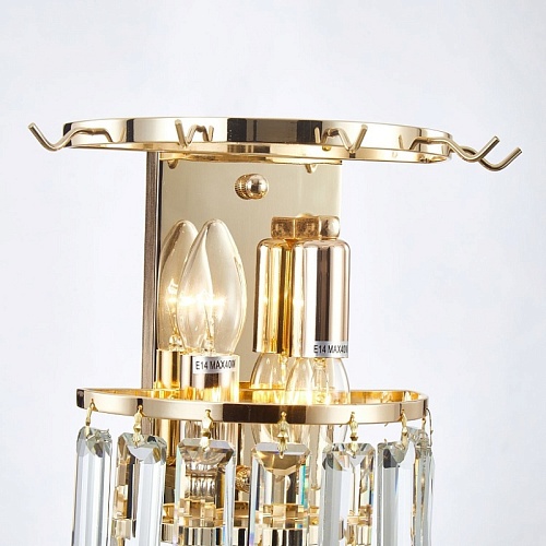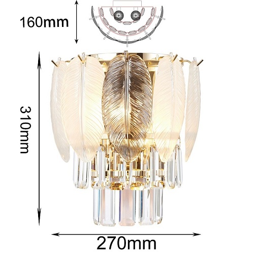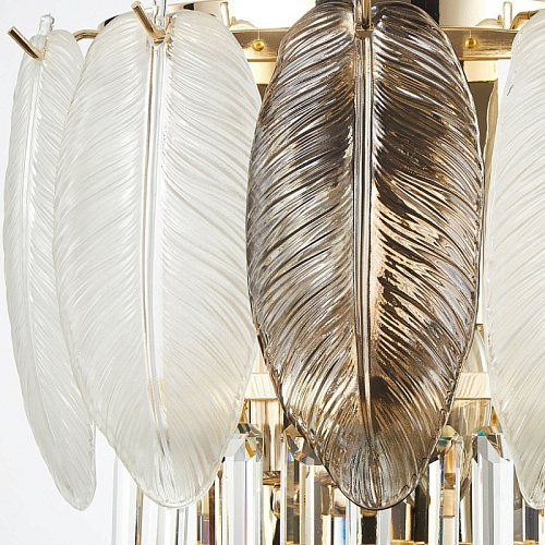 Каркас цвета золотой гальваники, декоративные лепестки из белого и серого стекла, хрусталь оригинальной прямоугольной формы высшего качества.
