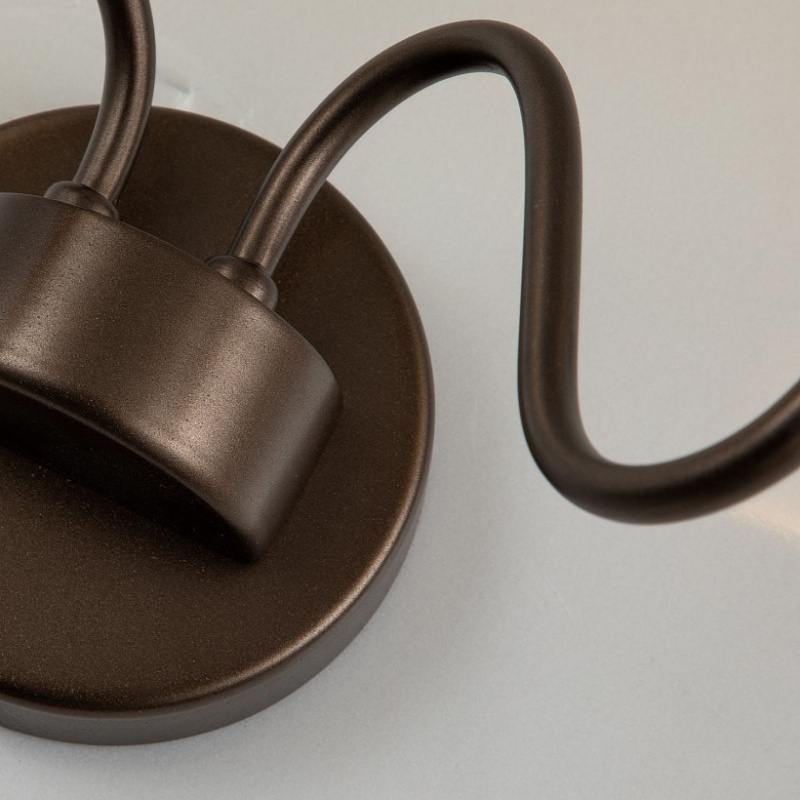 Металлический каркас темно-коричневого цвета, плафоны из полупрозрачного стекла.