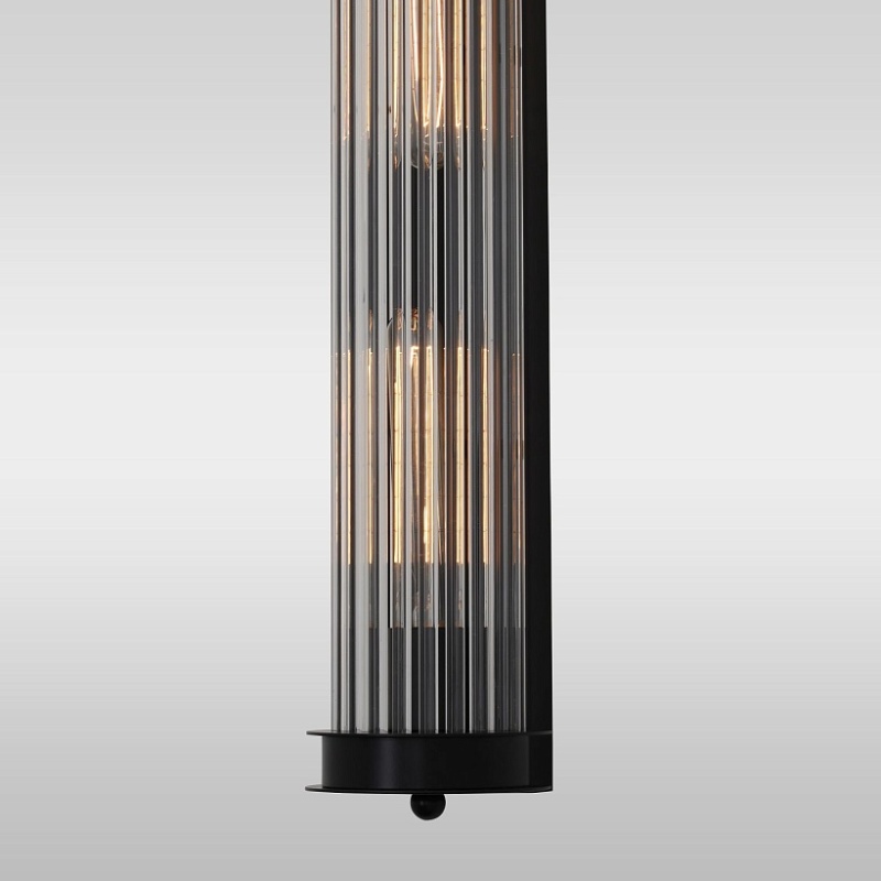Металлический каркас черного цвета, плафон из прозрачного рифленого стекла.