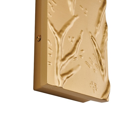 Металлическое основание золотого цвета, декорированное фактурой дерева, лампа LED 5W.