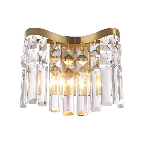 Каркас в цвете гальваническое золото, декорирована прозрачным хрусталем, сменная лампа.