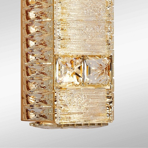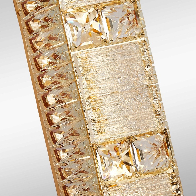 Каркас в цвете матовое золото, декор из матового рельефного стекла цвета шампанского по Муранской технологии, вставки из хрусталя в коньячном цвете, регулируемая высота.