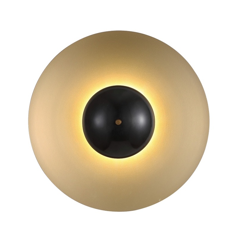 бра, металлического плафон диаметром 40 см в медном цвете с круглым элементом из черного мрамора, модуль LED.