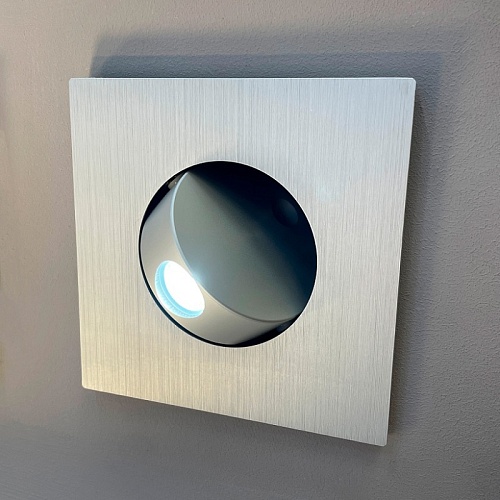 Встраиваемый бра с поворотным плафоном, каркас в цвете окрашенное серебро, встроенный выключатель.