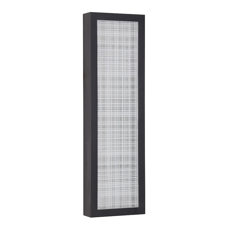Каркас матового черного цвета, плафон украшен узором пересекающихся насечек, внутренний периметр каркаса освещен LED-лентой, P65.