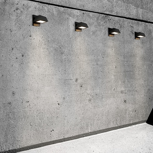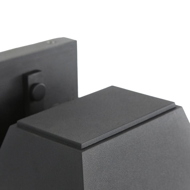 Металлический каркас черного матового цвета, плафон трапециевидной формы, рассеиватель из закаленного стекла, IP54.
