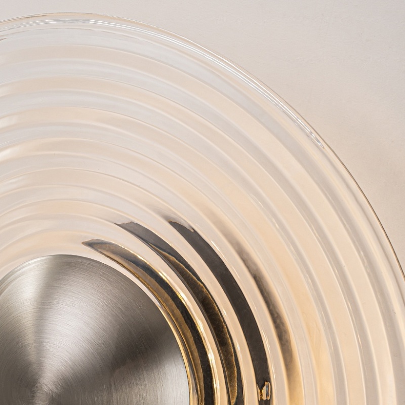 Металлический каркас в цвете никель, фактурный узорный диск из янтарного стекла, LED-модуль.