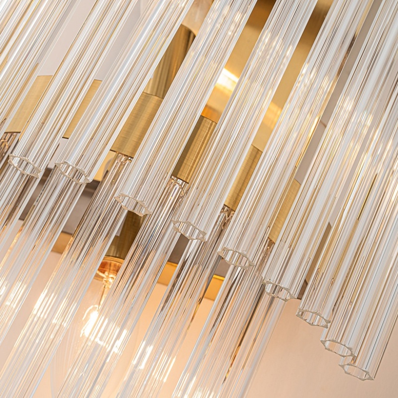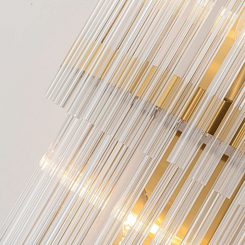 Каскадный светильник, каркас с покрытием гальваническим золотом, трубочки из полого стекла узорной формы, сменная лампа, цоколь E15.