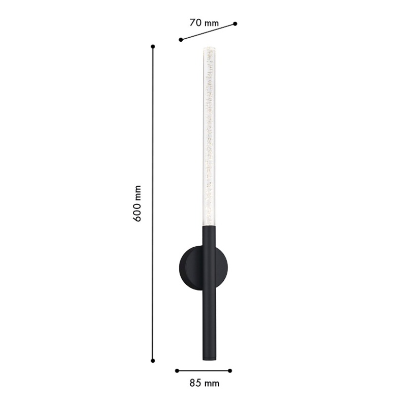 бра в черном матовом цвете, плафон из прозрачного акрила с воздушными пузырьками, которые при включении начинают светиться.