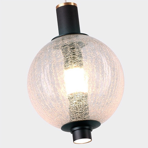 бра с выдувным плафоном кракле, два источника света, регулируемая высота, каркас в матовом черном цвете с элементами в цвете латунь.