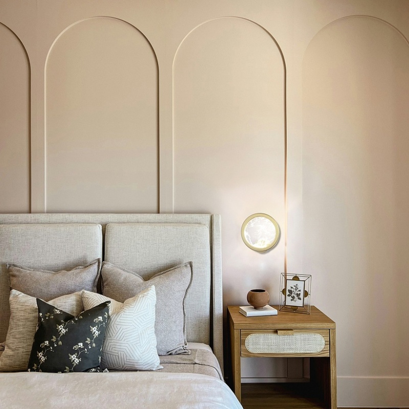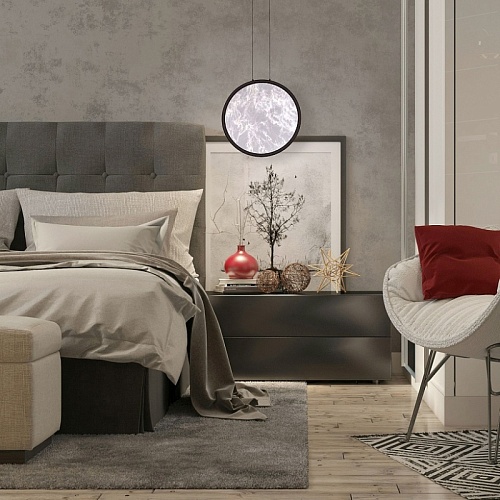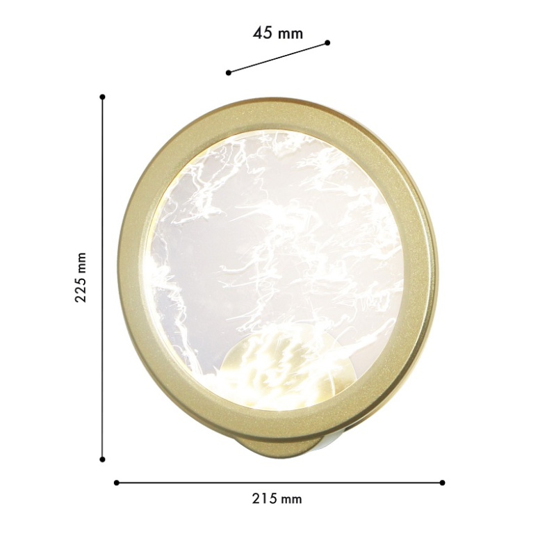 Металлический каркас в цвете матовое золото, плафон из акрила с эффектом дыма, лента LED расположена по внутреннему периметру плафона.