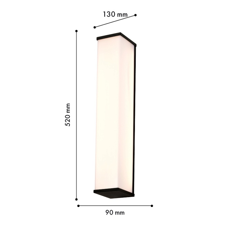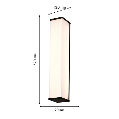 Металлический каркас черного цвета, LED-модуль, рассеиватель из белого непрозрачного акрила, IP54.