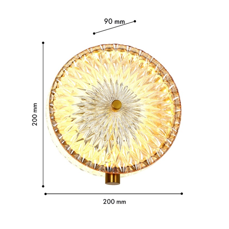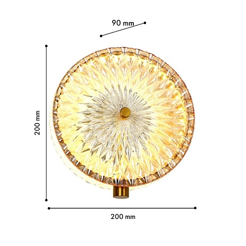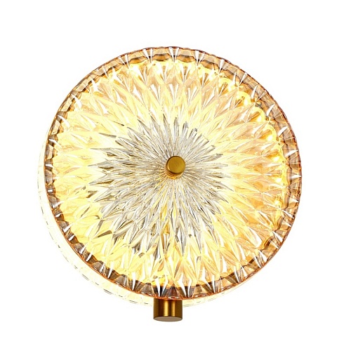Каркас черного цвета, плафон состоит из двух узорных стеклянных дисков прозрачного и янтарного цвета, внутри которых расположен LED-модуль, регулируемая высота.