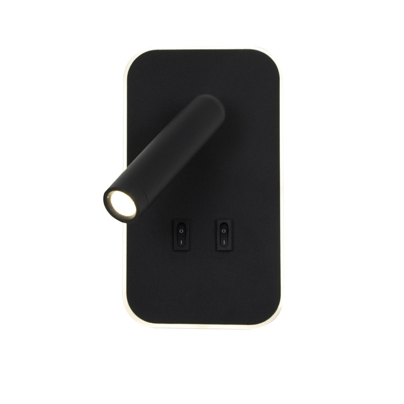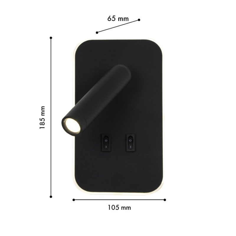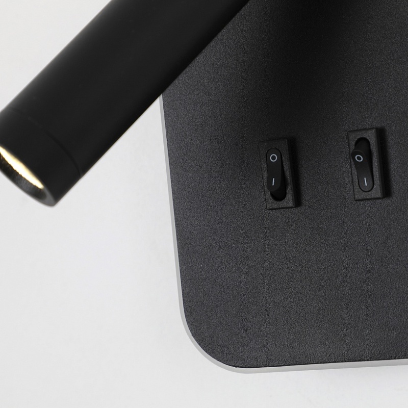 Каркас в матовом черном цвете, поворотный плафон, выключатели в виде кнопок на корпусе, LED-модули, угол поворота 90° и 350°.