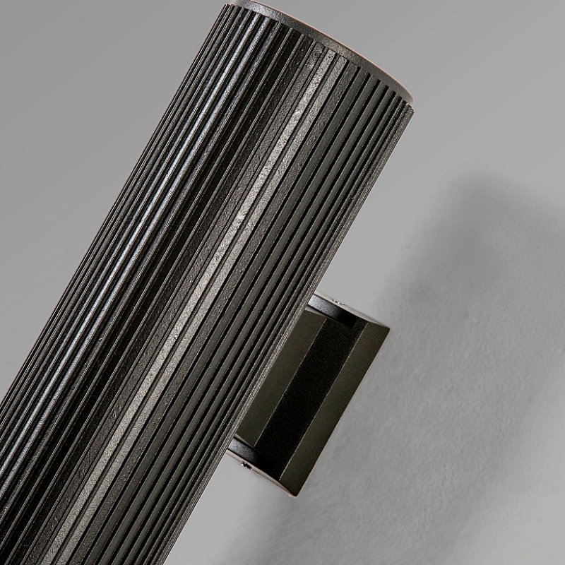 Металлический каркас серого матового цвета, ребристый плафон, класс защиты IP54, сменная лампа Е27.