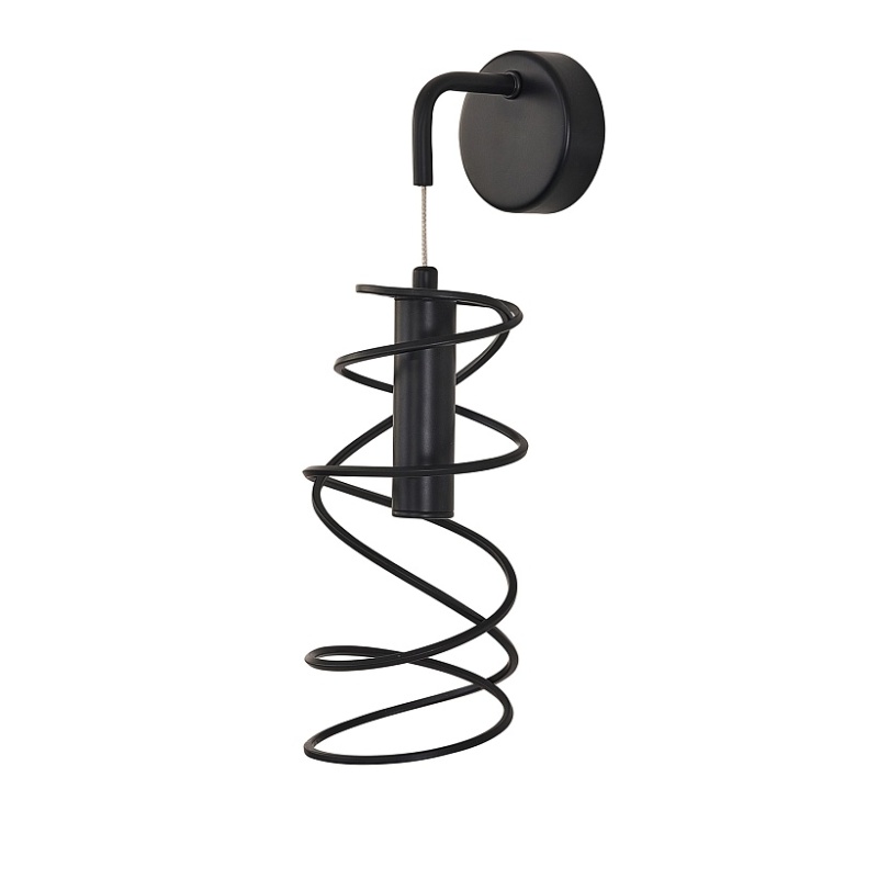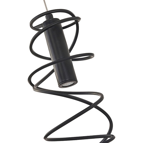 Металлический каркас черного цвета, плафон из металла в форме хаотично намотанной проволоки. Встроенный LED-модуль направлен вниз.